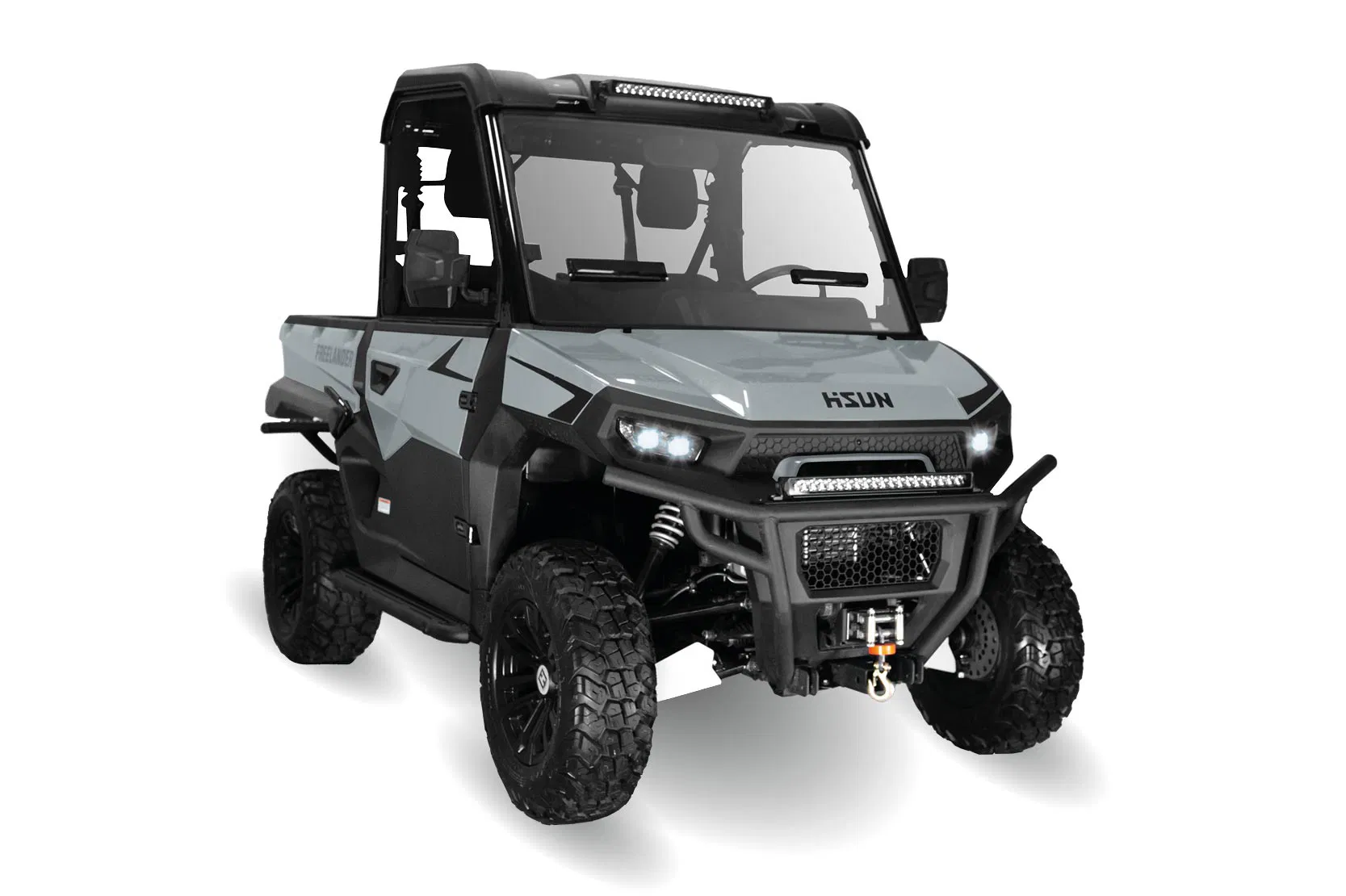 Hisun Freelander är en kraftfull UTV som suddar ut gränsen mellan hårt arbete och ren fritid. Designad för att erbjuda både komfort och råstyrka, är Freelander det självklara valet för dig som behöver en pålitlig partner för transporter på gården, skogsarbete eller under jakten.