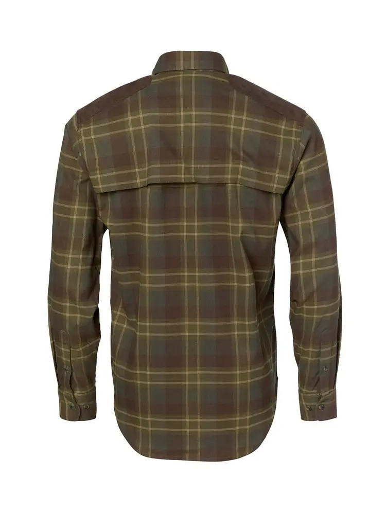 Skjortan är utvecklad i vår egen shooting-fit passform med förböjda ärmar som är extra långa. Den har specialkonstruerade axlar, ärmkullar samt rygg för ökad rörlighet, speciellt utformad för skyttar. Ärmarna går att fästa upp med en knäpptamp.