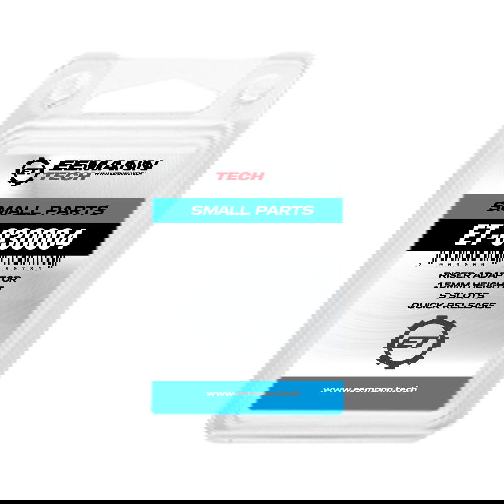 Höj din Picatinny-monteringsyta med 15 mm med denna lätta riseradapter med 5 spår från Eemann Tech – CNC-fräst av 6063-T6 aluminium med snabbkopplingsfunktion.