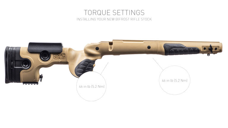 Bifrost är superstark och väderbeständig med ett ergonomiskt grepp och framstock som ger dig full kontroll under alla förhållanden. En av fördelarna med Bifrost är man förutom längden på kolven även kan ändra höjden och vinkeln på bakkappan för en bättre kontakt mot axeln. Vi stående skytte är det ofta en fördel med en lägre bakkappa och denna justering görs också snabbt helt utan verktyg. Picatinny-skenor, QD-fästen för vapenrem, och bipod-fäste är förmonterat.