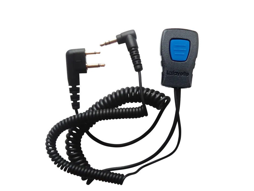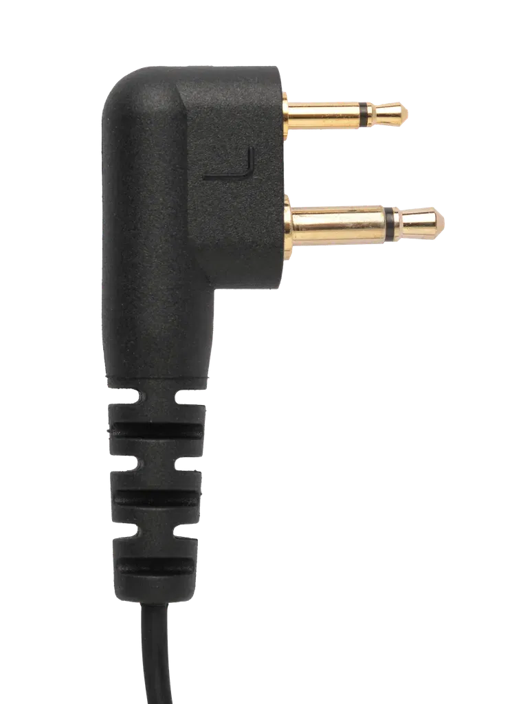 Headset med stor sändarknapp och mikrofon, metall kips. Anslutning 3,5mm hane för hörselskydd.