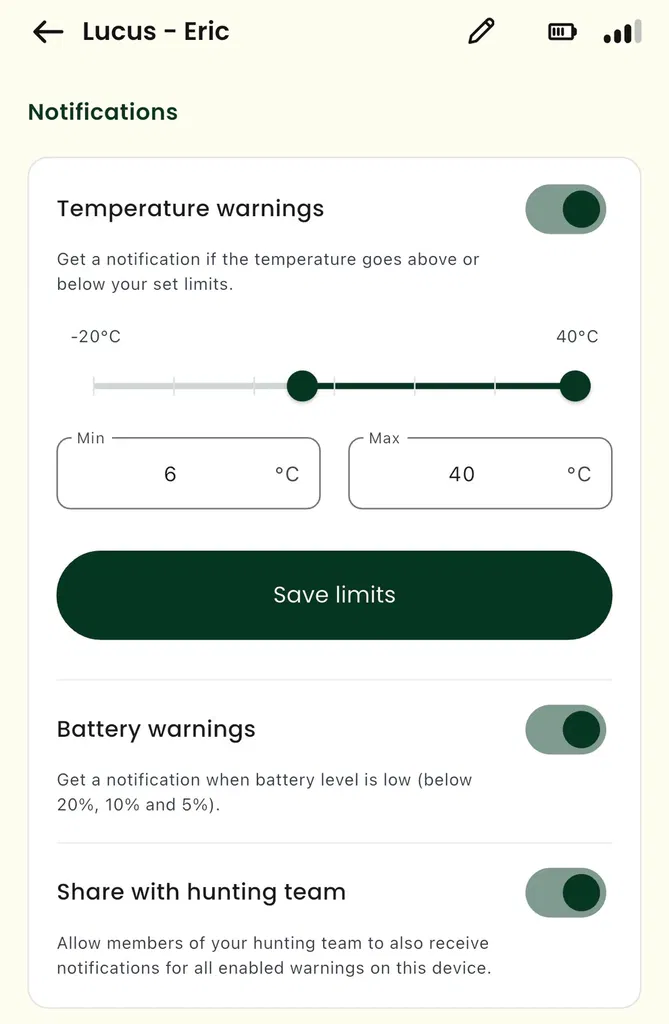 | Notiser: Anpassningsbara temperaturgränser i appen | |